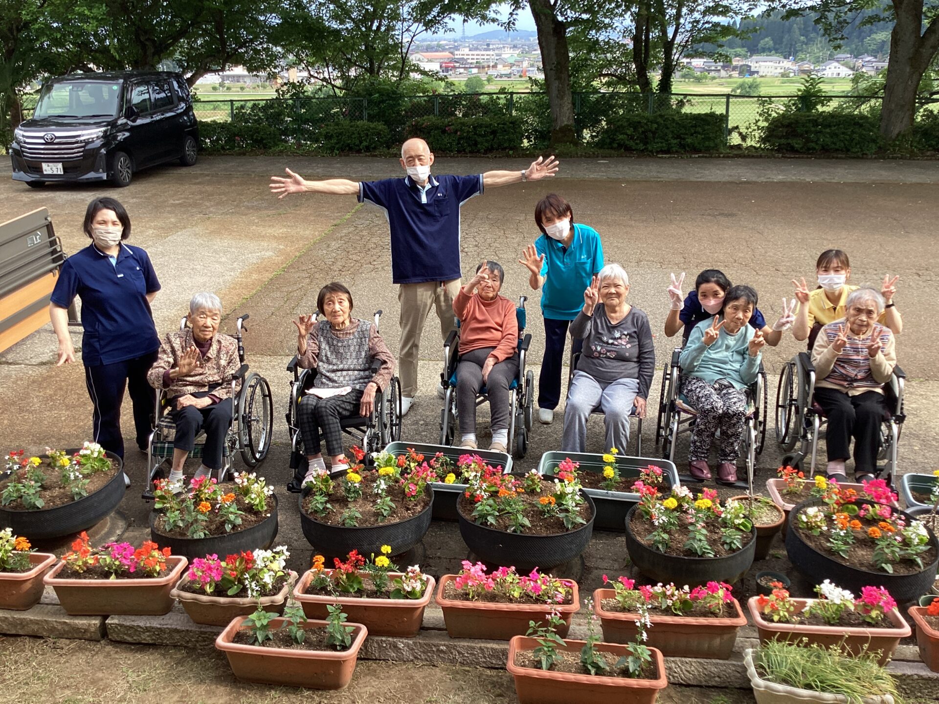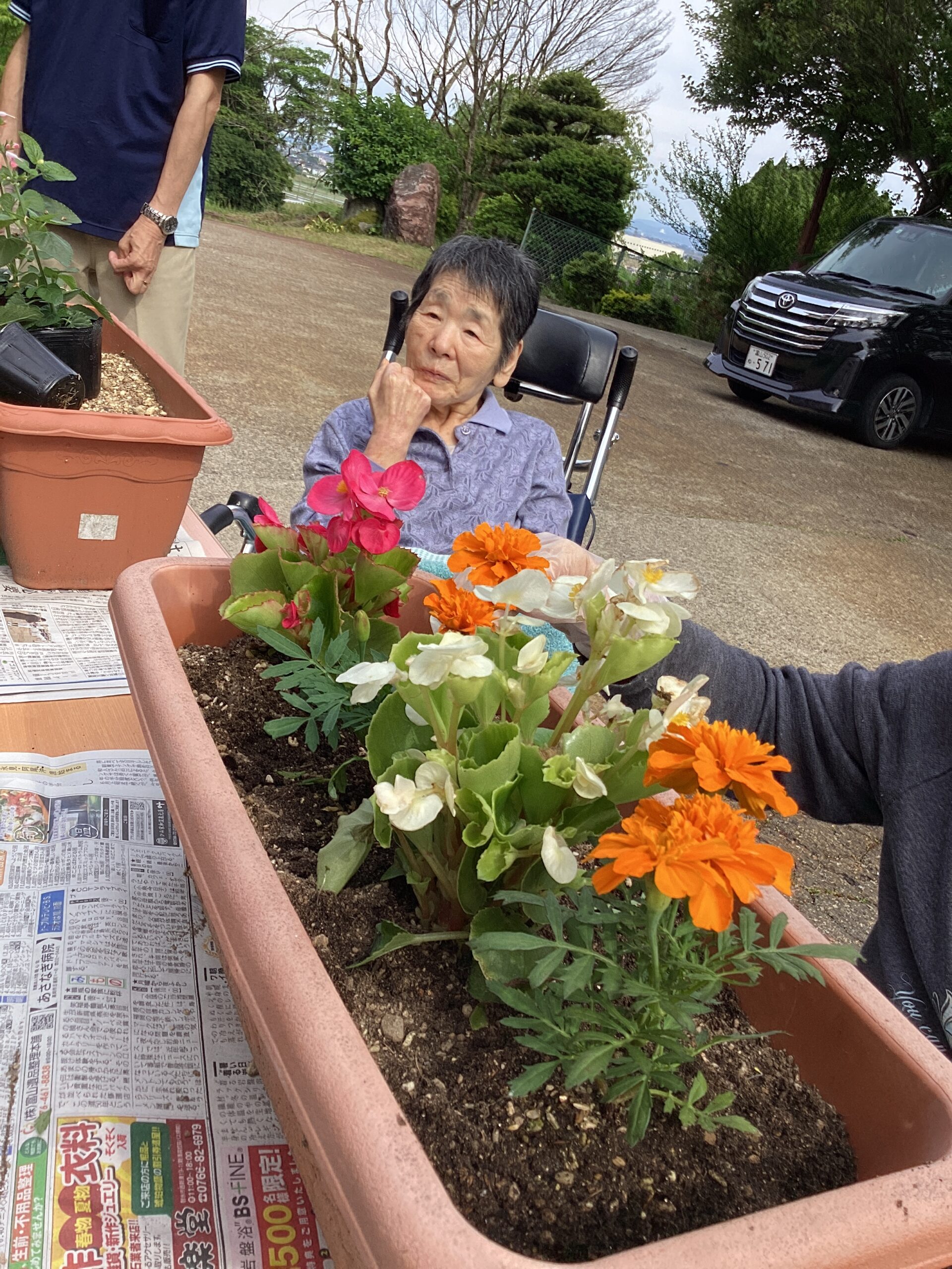 利用者の皆様と花を植えました。